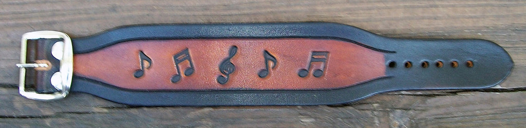Music Notes Leather Bracelets handmade by Old School Leather Co.